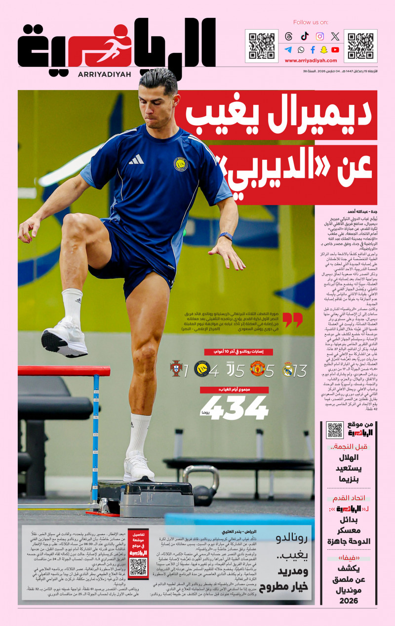 • 1 رونالدو يغيب عن نيوم.. ومدريد خيار مطروح