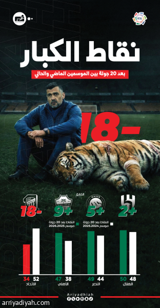 نقاط الكبار.. بعد 20 جولة بين الموسمين الماضي والحالي