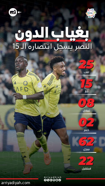 بغياب الدون النصر يسجل انتصاره الـ 15